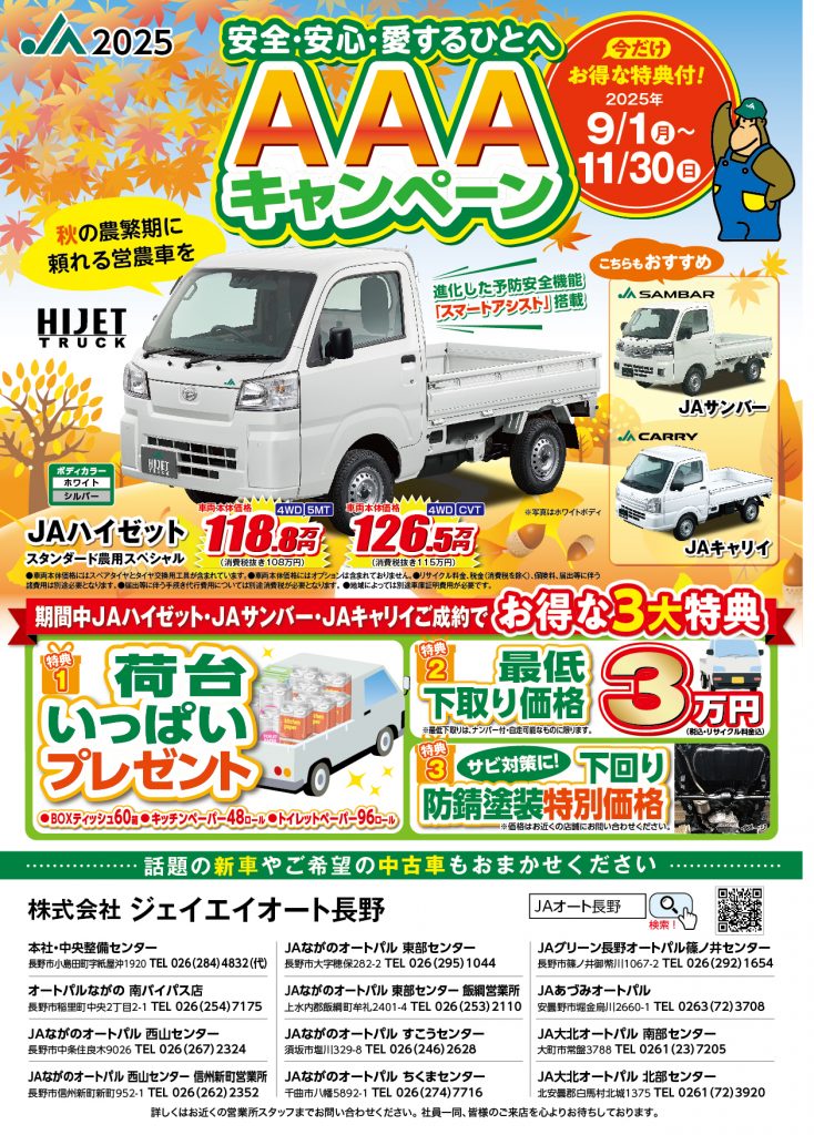 【JAハイゼット・JAサンバー・JAキャリイご成約特典】