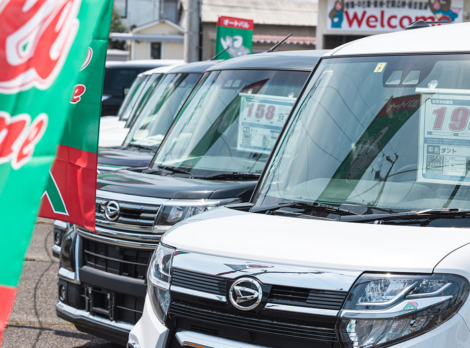 展示場には未使用車をはじめ軽自動車、コンパクトカー、ミニバン、軽トラックなど多彩なバリエーションで常時70台以上の中古車を展示し、みなさまのご希望の車をお探しします。車の買取りも行っていますのでお気軽にご来店ください。